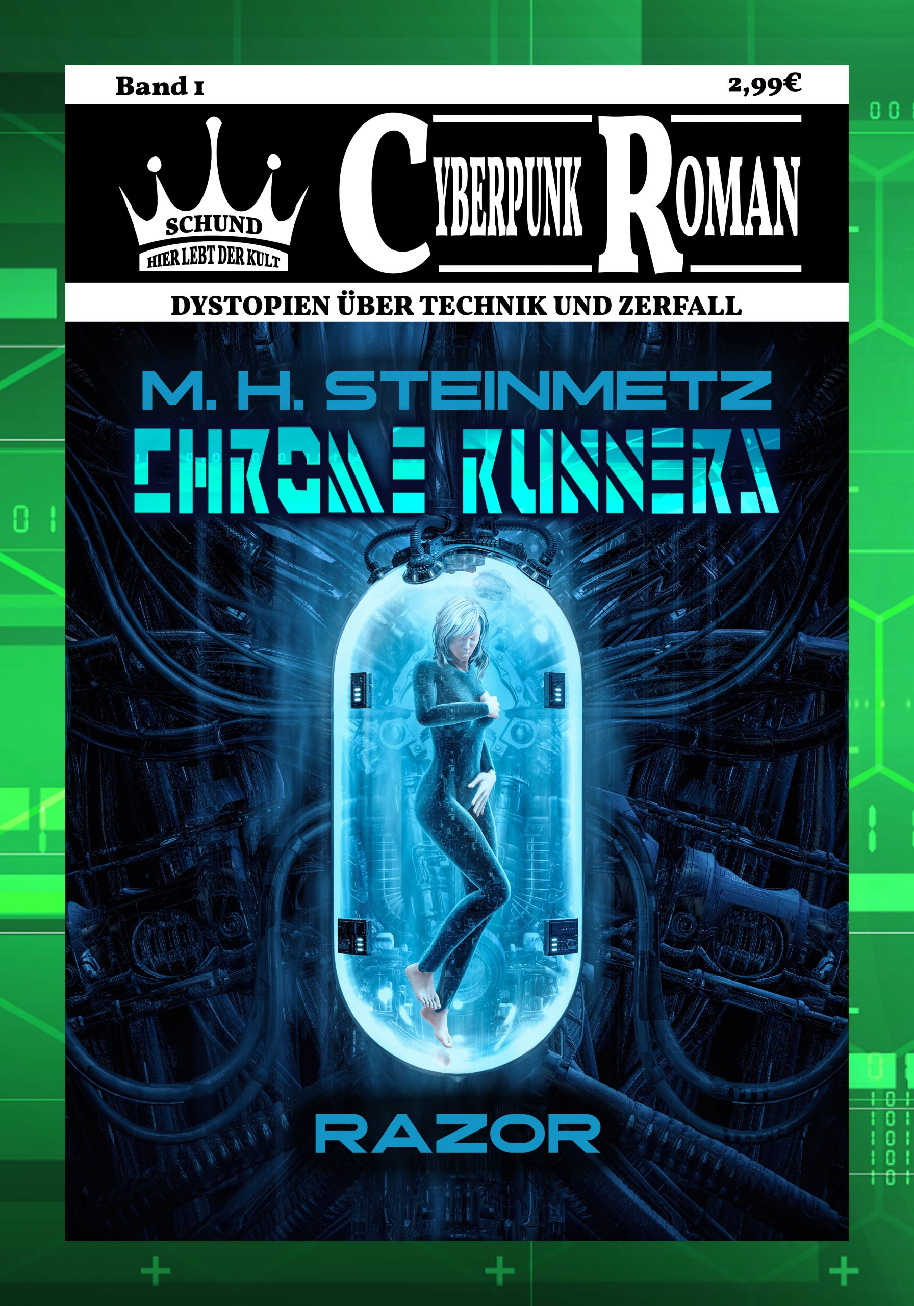 ![]() | SCR001 Cyberpunk Roman Band 1 M.H. Steinmetz – Chrome Runners Vol.1: Razor Veröffentlicht 30.01.2024 Format Heftroman Hergestellt in Handarbeit |